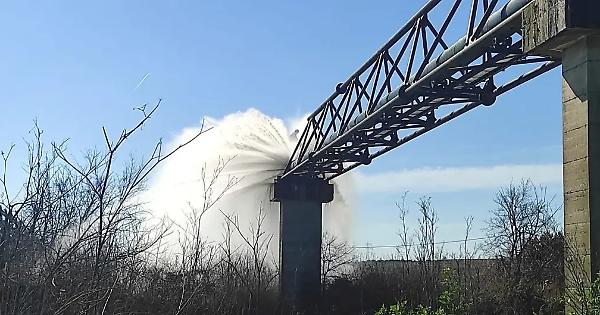 CIVITAVECCHIA – Colpo d’occhio questa mattina sulla Litoranea, nei pressi del ponte sul Mignone. Uno dei tubi che attraversa il fiume si è danneggiato a tal punto da esplodere in corrispondenza di una giuntura, questa mattina, creando un effetto geyser come si vede nella foto gentilmente concessa da Francesco Serio. Un rischio anche per chi transitava in zona. L’acqua è stata chiusa, in attesa dell’intervento degli operai per riparare il guasto sulla condotta del Consorzio di bonifica.