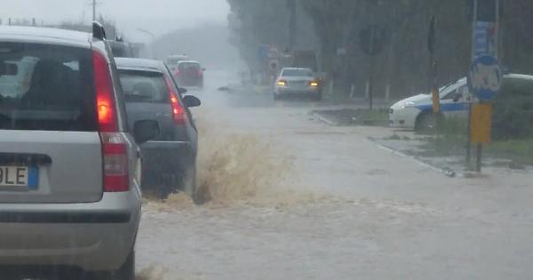 Gli effetti del maltempo sul litorale. A Cerveteri sommersa dall’acqua la rotatoria di via Settevene