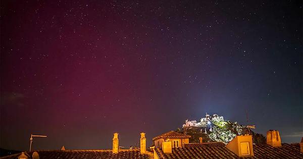 TOLFA - La tempesta geomagnetica di alcune ore fa, che è stata la più potente da quasi 21 anni, si è vista anche a Tolfa: i colori dell'aurora boreale si sono visti a occhio nudo anche nei cieli del paese collinare.
