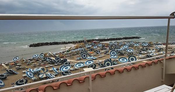 SANTA MARINELLA – Una breve quanto violenta tromba d'aria ha caratterizzato la prima mattinata dei bagnanti che affollano gli stabilimenti di Santa Severa costretti, loro malgrado, a una rapida fuga verso l'interno, mentre gli ombrelloni venivano trascinati dal forte vento.