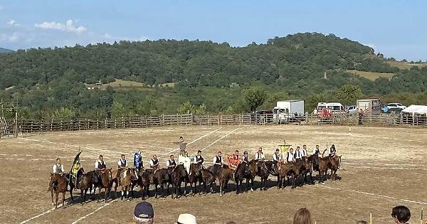TOLFA - A Tolfa oggi è il grande giorno del 34^ Torneo dei Butteri Rionale e nell'aria si respira emozione, adrenalina e voglia di vincere per conquistare per un anno il potere territoriale. Oggi pomeriggio alle 18 si svolgerà presso il Polo Fieristico “La Nocchia” (Strada Santa Severa – Tolfa 14^ Km ad un passo dalle Terme Naturali del Bagnarello, la Necropoli del Ferrone e per i più audaci amanti del trekking il Monte Acqua Tosta) il 34° Torneo dei Butteri Rionale. Questo Torneo ieri è stato anticipato da una bellissima sfilata aperta dalla banda Giuseppe Verdi diretta da Stefania Bentivoglio e dal Gruppo Musici Sbandieratori di Tolfa, dietro a loro oltre 70 butteri di ogni etá a cavallo. La sfilata è stata presentata dell'esperto speaker e veterinario Alessandro Mellini. Durante la sfilata è stato presentato il meraviglioso Drappo realizzato per il Torneo di oggi. Durante la sfilata è stata consegnata ai famigliari una targa alla memoria del grande e indimenticabile buttero FRANCO Bentivoglio, che ha fatto della tradizione di Tolfa la sua passione e ne ha costruito parte della sua Storia, cavalcando sul campo dei vari Tornei dei Butteri e sfidando gli avversari sulla pista nella Corsa dei cavalli al fantino in onore di Sant'Egidio, il Palio di Sant'Antonio Abate e il Palio di San Giuseppe. Sulla targa è stato scritto: "A Franco che ha trascorso tutta la sua vita tra i beni più preziosi della nostra maremma. Buttero, fantino, tecnico addestratore di cavalli vincenti, il cui animo generoso è stato sempre legato fortemente a Tolfa". Al termine della sfilata molti dei partecipanti sono stati alla Sagra della Bistecca del Rione Cappuccini dove è stato proiettato per la seconda volta il video. Appuntamento oggi pomeriggio al Polo Fieristico de La Nocchia per tifare il proprio Rione e tenere ti i colori di Tolfa e la Tolfetanità. Ad aprire la Competizione Sportiva Equestre alle ore 18.00 con lo speaker Massimo Morra, l’esibizione di coreografie del Gruppo Musici Sbandieratori di Tolfa, grande novità di questo Torneo. A contendersi la Bandiera saranno Rione Rocca (colori bianco e rosso), presidente Veronica Vannicola. Butteri: Riccardo Fracassa, Andrea Fracassa, Luca Verbo, Ivano Cimaroli. Rione Poggiarello (colori giallo e verde), presidente: Franco Smacchia; aiuti Annalisa Gabrielli e Veronica Smacchia. Butteri: Stefano Olivetti, Luca Corrado, Marco Santacroce, Giulia Caparbi. Rione Cappuccini (colori bianco e celeste), presidente: Mauro Maranini, vicepresidente Stefania Fiorucci. Butteri: Giulio Onori, Alendro Dini, Pierluigi Befani. Rione Lizzera (colori bianco e verde), presidente Stefano Della Corte aiutato da Lucia Tagliani e da Livio Santoni. Butteri: Stefano Della Corte, Livio Santoni, Guido Agostini, Sara Corrado. Rione Sughera (colori giallo e rosso), presidente: Alessio Vannicola, aiuto Stefania Marcelli. Butteri: Pierluigi Papa, Alessandro Papa, Alessio Testa (riserva Carlo Papa). Rione Casalaccio (colori verde e rosso), presidente Dario Cascianelli; Butteri: Marta Papa, Daniele Piermarini, Luca Buzzi, Alfredo Stampigioni. Rione Battaglione (colore giallo e azzurro), referente Francesco Fiorucci. Butteri: Francesco Fiorucci, Vincenzo Bellocco, Remo Mellini, Giada Cammilletti. A fare da speaker Massimo Morra.