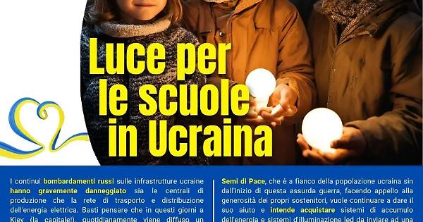 TARQUINIA - I continui bombardamenti russi sulle infrastrutture ucraine hanno gravemente danneggiato sia le centrali di produzione sia la rete di trasporto e distribuzione dell'energia elettrica. Basti pensare che in questi giorni a Kiev (la capitale), quotidianamente viene diffuso un programma giornaliero con gli orari di fornitura dell'energia alle utenze che vengono alimentate in media per due volte al giorno per periodi di due ore. Per poter tamponare questa situazione si ricorre a gruppi elettrogeni il cui carburante non è sempre disponibile alla popolazione perché riservato in via prioritaria ai generatori dei servizi essenziali (ospedali, amministrazioni pubbliche, vigili del fuoco, etc). Anche le scuole soffrono di queste carenze e, malgrado facciano parte dei servizi "privilegiati", spesso rimangono senza energia elettrica e sono costrette a rimanere chiuse (per motivi di sicurezza molte lezioni si tengono negli scantinati e al buio non si fa lezione!). Semi di Pace, che è a fianco della popolazione ucraina sin dall'inizio di questa assurda guerra, facendo appello alla generosità dei propri sostenitori, vuole continuare a dare il suo aiuto e intende acquistare sistemi di accumulo dell'energia e sistemi d'illuminazione led da inviare ad una o più scuole per poter garantire la continuità delle lezioni anche nei periodi di blackout elettrico: Un kit composto da una power station da 500 Wh e tre fari led, sufficiente a illuminare un'aula con 25-30 bambini, costa circa 350 euro.