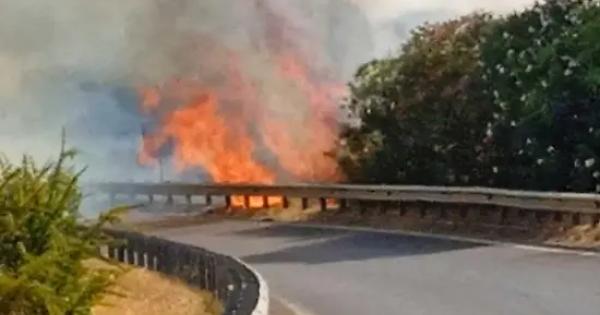 Le fiamme hanno raggiunto anche il margine della strada. L’uscita in direzione Vetralla della superstrada è stata chiusa creando difficoltà al traffico.