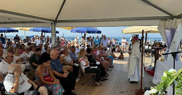 CERVETERI - La tradizionale messa dell’Assunta presso l’Associazione nautica Campo di Mare asd quest’anno, nonostante il caldo afoso, ha fatto registrare il record di presenze di fedeli, con circa 300 persone.