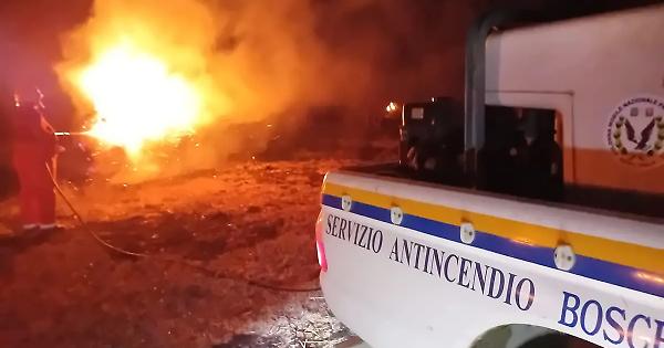 Al lavoro i vigili del fuoco e i volontari Aeopc che hanno preso parte alle operazioni di spegnimento con due squadre.