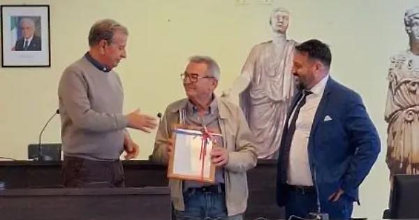 SANTA MARINELLA – Ieri l’altro, al termine della seduta del consiglio comunale, si è svolta una breve ma sentita cerimonia per onorare Gianfranco Svampa, noto commerciante di Santa Marinella. L’occasione è stata la celebrazione di 50 anni di attività, che è cessata in questi giorni, con la consegna della licenza commerciale, datata 1971. “E’ un piacere ed un onore per l’amministrazione comunale dedicare al signor Svampa un momento di celebrazione, con cui vogliamo ringraziarlo per la lunga e significativa attività svolta in tutti questi anni nella nostra città - ha affermato il sindaco Pietro Tidei - la comunità cittadina sentirà la mancanza dell’alimentari di via Punico, che per tanti anni è stata la tappa preferita di tante famiglie e di giovani studenti che ogni mattina si fermavano per acquistare la merenda da portare a scuola. Oggi Gianfranco si è ritirato per godersi dopo tanti anni di lavoro, la tranquillità della vita familiare e dedicarsi finalmente ai suoi interessi, come il gioco di bocce in cui sono sicuro batte tutti”.
