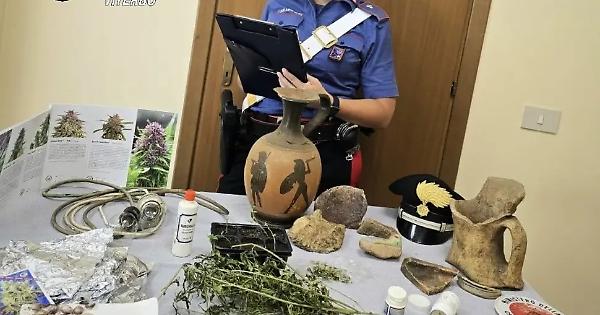 Nel secondo caso, l’uomo segnalato all’Autorità prefettizia per possesso di hashish per uso personale, è stato denunciato per ricettazione e possesso illecito di materiale di interesse archeologico: i militari durante le operazioni di perquisizione domiciliare, si sono resi conto che l’uomo aveva conservato nella propria camera da letto del vasellame di interesse storico/archeologico. Anfore e parti di terracotta presumibilmente del periodo etrusco/romano detenute illecitamente dall’uomo, sono state sottoposte a sequestro penale.
