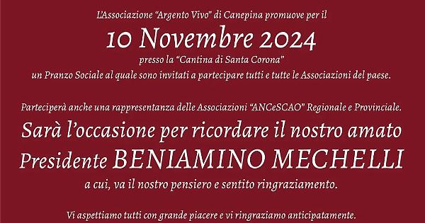 CANEPINA non dimentica Beniamino Mechelli, il giornalista e scrittore scomparso il 10 luglio scorso lasciando un grande vuoto in quanti lo conoscevano. La sua morte improvvisa, avvenuta per cause naturali nella sua casa di Canepina durante la rovente estate 2024, è stata un grande dolore, suscitando cordoglio unanime non solo nel paese cimino, ma anche nel mondo giornalistico e politico viterbese. «Beniamino Mechelli era un importante giornalista, un fine intellettuale e un grande uomo», aveva commentato il presidente della Provincia, Alessandro Romoli. «Uomo di grande cultura, era come un fiume in piena quando ricordava gli eventi culturali del passato», era stato il ricordo dell’ex sindaco di Viterbo, Giovanni Arena. «La perdita di Beniamino è la perdita di uomo di valore per il nostro territorio», così il consigliere comunale Giulio Marini. «Beniamino lascia un vuoto immenso, continueremo a crescere come lui avrebbe voluto», aveva detto il sindaco di Canepina, Aldo Maria Moneta. A ricordare aneddotti curiosi e la professionità di Beniamino erano stati anche i colleghi, tutti. E così, sulla scorta di tanto affetto, l’associazione “Argento vivo” organizza, per il prossimo 10 novembre presso la cantina Santa Corona un pranzo sociale a cui sono invitate tutte le associazioni del paese. “Sarà l’occasione per ricordare il nostro amato presidente Beniamino Mechelli, a cui va il nostro pensiero e il nostro sentito ringraziamento”, si legge sulla locandina dell’evento, cui prenderà parte anche una rappresentanza delle associazioni Ancescao regionale e provinciale. Per tutte le informazioni e prenotazioni è possibile rivolgersi al comitato al numero 0761 1871003; e al numero 392 1881670 (Getulio). Alla bellissima iniziativa non mancheranno sicuramente gli amici più cari del giornalista, i familiari e i colleghi.