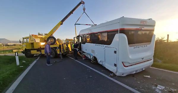 Per cause in corso d’accertamento un’auto che viaggiava in direzione Viterbo ha perso il controllo ed è finita contro un camper che procedeva verso Montefiascone. Quest’ultimo per evitare l’impatto o forse proprio a causa dell’urto, è finito contro l’altra vettura che procedeva nella sua stessa direzione. Sei in tutto le persone coinvolte di cui quattro, come detto, sono finite in ospedale. Si tratta della coppia a bordo della prima auto, della moglie del conducente del camper e del passeggero a bordo della seconda auto. Sul posto sono intervenuti oltre ai sanitari del 118 che hanno trasportato i feriti all’ospedale di Belcolle, anche i vigili del fuoco di Viterbo che hanno estratto dalle lamiere la donna che era sul camper. La circolazione stradale è andata completamente in tilt con il traffico bloccato in entrambe le direzioni. Presenti sul posto anche gli agenti delle volanti, della polizia stradale di Monterosi e della polizia locale a cui sono stati affidati i rilievi dell’incidente.
