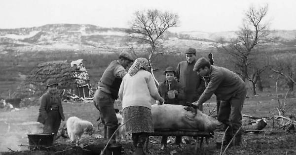 Nel giorno fissato, l' 8 dicembre, meglio se faceva freddo con vento secco di tramontana, le donne, si alzavano alle quattro del mattino e riempivano la pentolone, di acqua messa a bollire sopra un fuoco. Verso le sette quando l’acqua già bolliva arrivava il norcino, per la macellazione. Fatto uscire dalla stalla, attirandolo con una manciata di grano, quattro o cinque uomini robusti sistemando un laccio di corda a una zampa e afferrandolo per la coda atterravano il maiale.