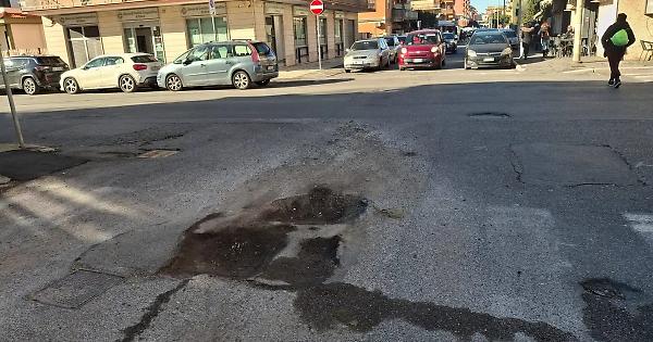 L’allarme lanciato dai residenti: «All’incrocio tra via Napoli e via Flavia la voragine è enorme»