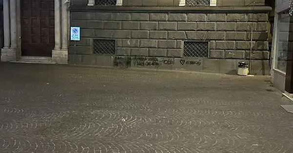 Nella notte tra il 25 e il 26 dicembre sono apparse delle scritte sul palazzo della Banca d’Italia, nella centralissima piazza della Repubblica.