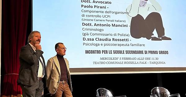 TARQUINIA - Si è tenuto mercoledì al teatro comunale "Rossella Falk" il primo dei due incontri organizzati nell'ambito della Giornata contro il bullismo ed il cyberbullismo. All’incontro sono intervenuti l'avvocato Paolo Pirani, componente dell’organismo di controllo Ucpi (Unione Camere Penali Italiane), il criminologo Antonio Mancini (già commissario di polizia), la psicologa e psicoterapeuta Claudia Rossetti, il direttore artistico del teatro Giancarlo Capitani, e, in modo particolare, i docenti e gli studenti dell'IC "Ettore Sacconi" e dell'istituto paritario "San Benedetto".