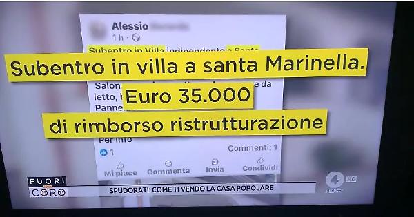 Della vicenda si è interessata anche la trasmissione di Mediaset Fuori dal Coro, che due giorni fa ha mandato in onda il servizio su Rete 4. Una vicenda iniziata alcuni mesi fa quando, sui social network, è stato pubblicato un messaggio in cui si evidenziava una vendita di un alloggio popolare a Santa Marinella in via Elcetina a 35mila euro.