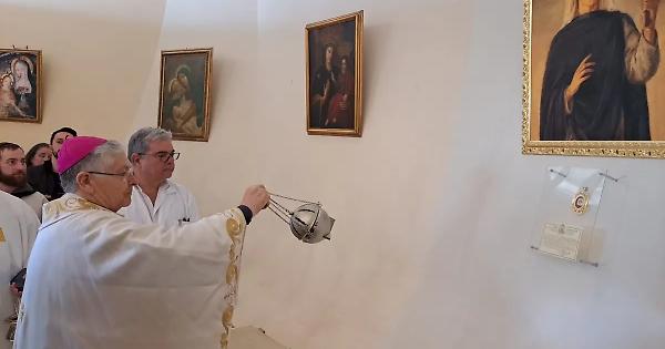 La reliquia di Santa Rosa nella cappella dell’ospedale che porta il suo nome. Il dono è del vescovo Piazza oggi in visita alla struttura sanitaria.