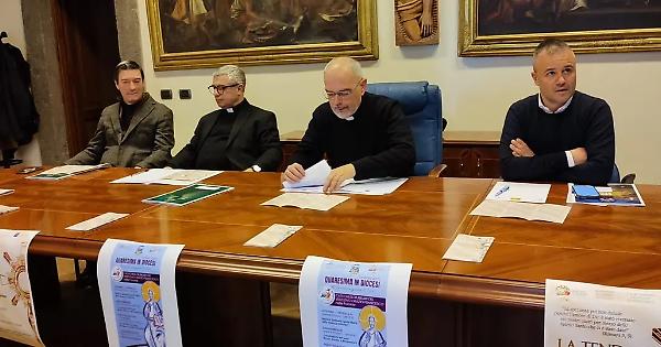 «La chiesa di San Faustino diventa la tenda del Giubileo. Insieme per un’esperienza di umanità» lo ha annunciato ieri don Massimiliano Balsi, vicario diocesano cultura e tradizioni, presentando gli appuntamenti della Quaresima 2025 nella Diocesi di Viterbo, che si ispirerà al principio “La speranza genera la vita” e che avrà le catechesi giubilari a cura del vescovo Orazio Francesco Piazza presso ogni forania. In quella di Vetralla e Viterbo, presso la basilica di Santa Maria della Quercia, si partirà l’11 marzo alle 18.30; seguirà quella di Bagnoregio martedì 18 marzo sempre alle 18.30 presso la concattedrale dei Santi Nicola, Donato e Bonaventura; il 25 marzo alle 18.30 sarà la volta di Montefiascone-Tuscania presso la concattedrale di Santa Margherita. L’ultima sarà l’8 aprile alle 18.30 presso la chiesa di Sant’Agostino ad Acquapendente. Sarà possibile seguire in diretta streaming le catechesi che sui canali social della Diocesi. Grande novità, come detto, sarà la tenda del Giubileo presso la chiesa di San Faustino a Viterbo. Dal 10 marzo all’11 aprile ci saranno 30 eventi e lectio magistralis tenuti dai movimenti ecclesiali laicali. Saranno 24 i movimenti e associazioni che si alterneranno presso la chiesa di San Faustino. L’esordio sarà a cura del vescovo Piazza che, alle 18, terrà la sua lectio magistralis, mentre si chiuderà il 10 aprile con il Giubileo delle bande della Diocesi di Viterbo e con il pellegrinaggio dalla chiesa di San Faustino a quella di Santa Maria Liberatrice. A illustrare questa serie di iniziative sono stati oltre a don Massimiliano Balsi, don Alfredo Cento, delegato vescovile per il laicato e le confraternite e Roberto Marchetti, presidente Consulta dei laici. «Le iniziative della Tenda del Giubileo - ha detto Roberto Marchetti – nasce dalla collaborazione tra il laicato e la chiesa per fare ciò che è necessario per il popolo di Dio e daremo tutti il massimo». Don Massimiliano Balsi ha parlato di «momenti di crescita spirituali e culturali, la Bibbia parla della tenda richiamando l’esperienza di Mosé e il suo confronto con Dio che punta alla riconciliazione di tutte le comunità umane».