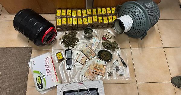 L’attività di Polizia Giudiziaria, con l’ausilio dell’unità cinofila, ha permesso di rinvenire un grosso quantitativo di sostanza stupefacente, nascosto in diversi punti della casa e all’interno delle pertinenze. In particolare, all’interno del box auto, nascosto dentro due contenitori di vino, sono stati sequestrati 80 panetti di hashish e 1 kg di marijuana, oltre il materiale per il confezionamento delle dosi e quasi 12mila euro in banconote da 50.