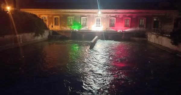 Gli impianti idrovori di Focene e Ostia illuminati con la bandiera tricolore