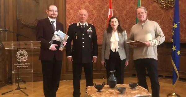 L’ambasciata d’Italia a Copenaghen, su richiesta dei due cittadini danesi, ha proceduto alla presa in carico dei quattro reperti, esprimendo formale ringraziamento per la spontaneità del gesto volto alla restituzione in favore dello Stato italiano.