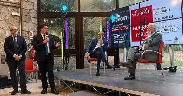 La Casa del Vento di Bagnoregio gremita per l’incontro con il professor Giulio Tremonti, che ha presentato il suo ultimo saggio “Guerra o Pace”. Un pubblico attento e numeroso ha infatti preso parte all’evento, che è stato introdotto dal sindaco Luca Profili e dal deputato Mauro Rotelli, e moderato dal professor Luigi Di Gregorio, docente di Comunicazione politica all’Università della Tuscia.