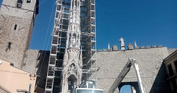 In un anno straordinario in cui si celebra il Giubileo, la marcia di avvicinamento al grande evento del Trasporto del 3 settembre inizia con notevole anticipo. Ieri la Macchina di Santa Rosa è tornata a vegliare su Viterbo più di un mese e mezzo prima del periodo in cui la città è abituata a vederla prendere forma. E la scelta della data per assemblare Dies Natalis non è casuale: il 9 luglio, giorno di nascita della piccola grande Rosa. Intorno alle 8 i camion con i vari pezzi della struttura devozionale sono partiti dalla Tuscanese, dove sono custoditi in un capannone dell'impresa Fiorillo, per attraversare la città fino ad arrivare in piazza San Sisto, con i ponteggi già allestiti per l'operazione di montaggio. Ad attenderli la sindaca Chiara Frontini, l'ideatore di Dies Natalis Raffaele Ascenzi, il costruttore Vincenzo Fiorillo, Massimo Mecarini, presidente del Sodalizio dei facchini e tanti viterbesi. Poi l'inizio dell'assemblaggio in una giornata dalla temperatura più mite rispetto al clima afoso degli ultimi giorni. L'impresa Fiorillo ha alle spalle una tradizione come azienda costruttrice delle Macchine di Santa Rosa. Mirko Fiorillo che, insieme al padre Vincenzo, da anni si occupa di tradurre in una concreta forma tridimensionale il bozzetto progettato dall'ideatore, rivela alla nostra testata la sensazione che si ha nell'assemblare la struttura devozionale con tanto anticipo.