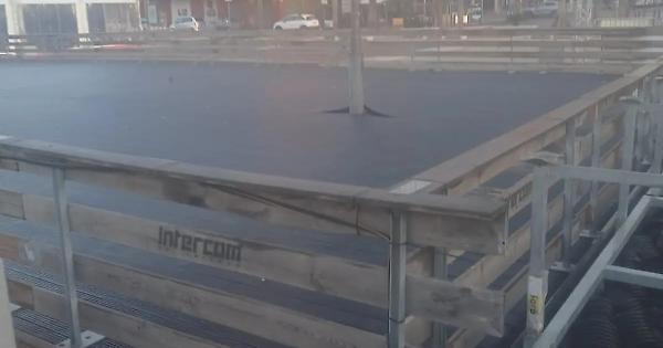 Nella pista di pattinaggio sul ghiaccio “spunta” un palo della luce