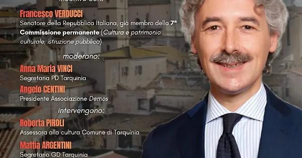 Ospite d’onore sarà Francesco Verducci, senatore della Repubblica Italiana, già membro della 7° Commissione permanente (Cultura e patrimonio culturale, istruzione pubblica.). Intervengono nella conferenza l’assessora alla Cultura del Comune di Tarquinia Roberta Piroli e sarà presente per un saluto istituzionale il sindaco Francesco Sposetti. Seguirà l’intervento di Mattia Argentini, segretario dei Giovani democratici; Alessandro Mazzoli, presidente dell’assemblea Provincia Pd- Viterbo e Enrico Panunzi, vicepresidente del consiglio regionale del Lazio.