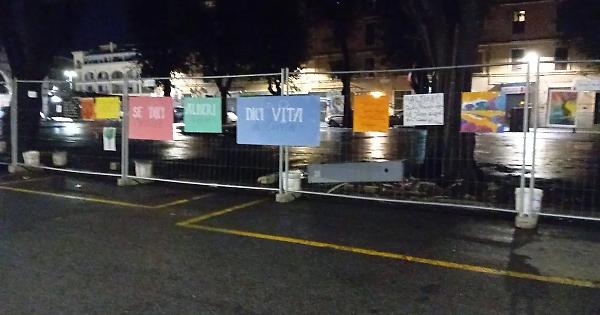 CIVITAVECCHIA – Un’azione simbolica, notturna, per tenere alta l’attenzione su una vicenda che continua a dividere la città. Nella notte, un intervento artistico (foto di Francesco Cristini) ha reso omaggio agli alberi di piazza Regina Margherita, al centro della contestata riqualificazione dell’area del mercato. A darne notizia è il Forum Ambientalista, che insieme al comitato spontaneo dei cittadini è impegnato nella mobilitazione contro l’abbattimento dei lecci secolari.