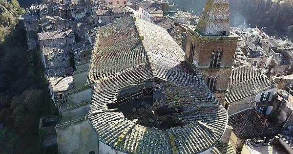 Crollo nella chiesa di San Giovanni Evangelista, il duomo di Capranica, uno dei simboli storici e religiosi più importanti del paese.