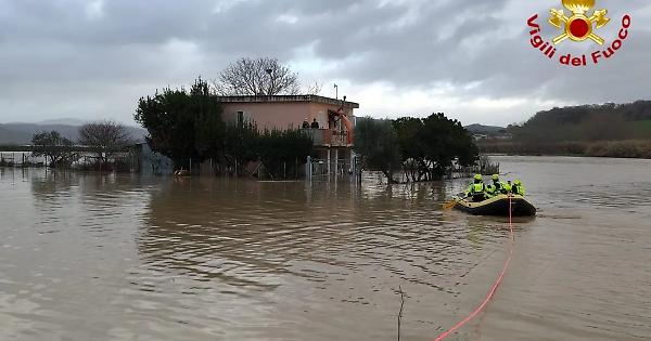 TARQUINIA - I fiumi Marte e Mignone sono esondati dopo le intense precipitazione delle scorse ore e tre persone e due cani sono stati salvati dai vigili del fuoco.