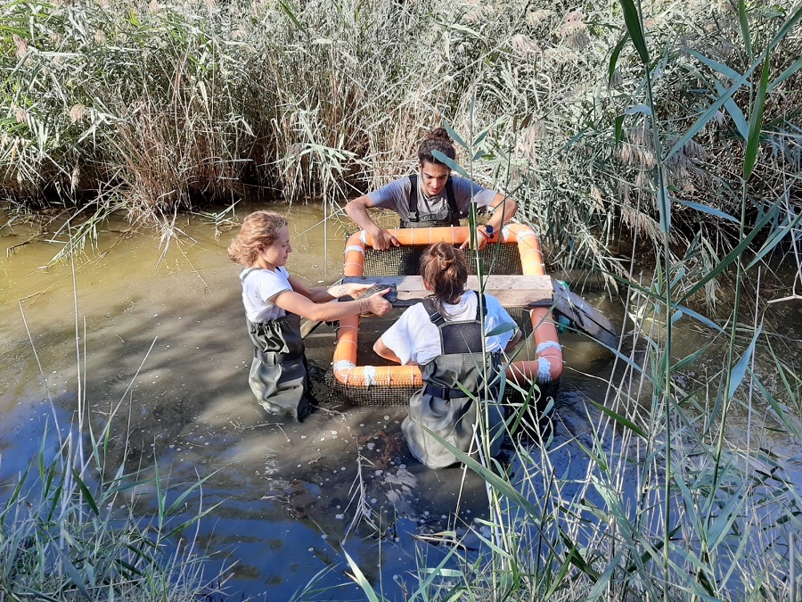 Sistema per catturare le tartarughe nello stagno di Torre Flavia