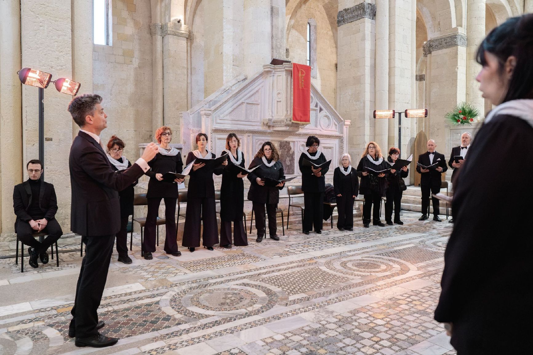 Protagonista della serata il Coro Arké, diretto da Giovanni Cernicchiaro, che ha saputo restituire ogni brano con equilibrio, sensibilità e rigore espressivo. Dal lirismo limpido di Palestrina alle tensioni dello “Stabat Mater” di Kodály, fino alle sonorità contemporanee e contemplative di Tavener e Pärt, il programma ha attraversato secoli di musica sacra mantenendo una forte coerenza narrativa ed emotiva.