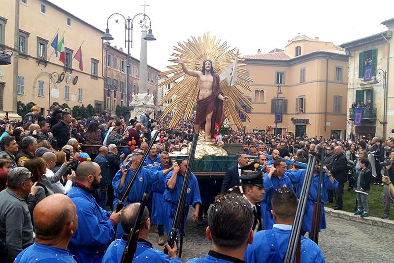 Ma se il venerdì è il giorno del pianto, la domenica è quello del trionfo. La Pasqua tarquiniese è famosa in tutta Italia per la sua carica energetica e la sua singolarità. Qui la Resurrezione non è solo annunciata, è corsa, gridata e vissuta a un ritmo travolgente.