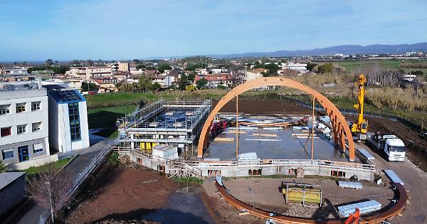 Il nuovo impianto sta prendendo forma all’interno del cortile dell’istituto alberghiero di via Federici, dove sono già state completate sia la struttura portante sia la copertura.