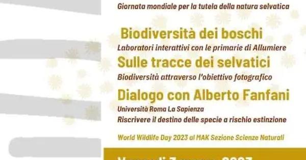 Oggi 3 marzo alle ore 9.39 si terrà il laboratorio interattivo ''Patrimonio di biodiversità dei boschi'' a cui parteciperanno anche gli alunni dell'istituto Comprensivo di Allumiere. Domani 4 marzo alle 10.30: ''Sulle tracce dei selvatici: Biodiversità attraverso l'obiettivo fotografico''. Seguirà alle 11: ''Riscrivere il destinodelle specie più a rischio di estinzione, un dialogo aperto con il professor Alberto Fanfani, professore associato dell'Università La Sapienza. Alle 12.30 è invece in programma il World Wildlife Day 2023dedicato alla sezione Scienze Naturali: un viaggio con la naturalista Marta Visentin (Servizi Culturali MAK).