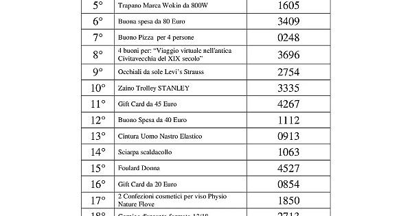 CIVITAVECCHIA – Si è svolta ieri l’estrazione dei biglietti vincenti della lotteria abbinata all’edizione 2023 di “Io Faro carnevale”. Ecco i tagliandi vincenti: