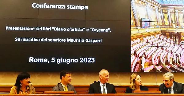 Del Monte e Bisozzi in Senato per presentare i loro libri “Diario d’artista” e “Cayenne”