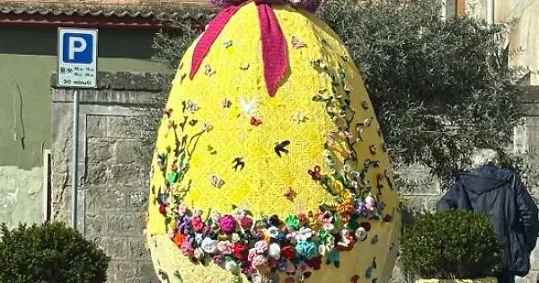 FABRICA DI ROMA - Certamente ci sono mille modi per augurare alla cittadinanza serene festività pasquali, ma quello scelto dal “Gruppo uncinetto Fabrica di Roma”, ha superato ogni aspettativa e ieri, tutti quelli che sono passati per piazzale Garibaldi – fabrichesi e non – non hanno potuto che fermarsi ad ammirare l’uovo pasquale gigante realizzato con tantissime tessere e addobbi floreali lavorati a mano ad uncinetto.