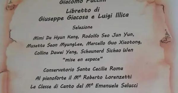 TOLFA - Nell'ambito della rassegna: "I Love Opera" a Tolfa arriva l'opera lirica. Sul palco del teatro Claudio a partire dalle 17.30 andrà in scena l'opera "La Boheme" di Giacomo Puccini con libretto di Giuseppe Giocosa e Luigi Illica. La mise en espace è a cura del Conservatorio di Santa Cecilia di Roma; al pianoforte il maestro Roberto Lorenzetti. Protagonisti della Boheme sono gli studenti della classe di canto del M° Emanuele Salucci. Ad interpretare Mimì Daffyum Kang; Rodolfo: Seo Jon Yun; Musetta: Seam Myung Lee; Marcello: Guo Xiaotong; Colline: Donwei Yang; Schaunard Sichao Wen. L'evento è ormai un classico apprezzatissimo a Tolfa ed è organizzato dall'associazione "Il Barsolo" in collaborazione con il "Circolo Poetico Bartolomeo Battilocchio".
