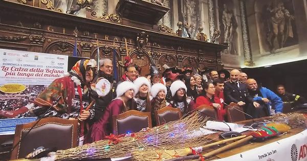 La Befana vien di notte… Ma a Viterbo arriva nel pomeriggio di domani, 5 gennaio, accompagnata da centinaia di “colleghe” per trasportare in giro per il centro città la calza più lunga del mondo. Un manufatto, lungo 53 metri, che sfilerà in parte trasportato su una lunga fila di Fiat 500 del Tuscia club e, nei punti più impervi, innalzato sulle scope di un centinaio di befane. «Una manifestazione giunta alla 23esima edizione che in numerose occasioni ha portato Viterbo alla ribalta dei media nazionali dando visibilità alla nostra città» ha dichiarato la sindaca Chiara Frontini nella conferenza stampa tenuta a Palazzo dei Priori.