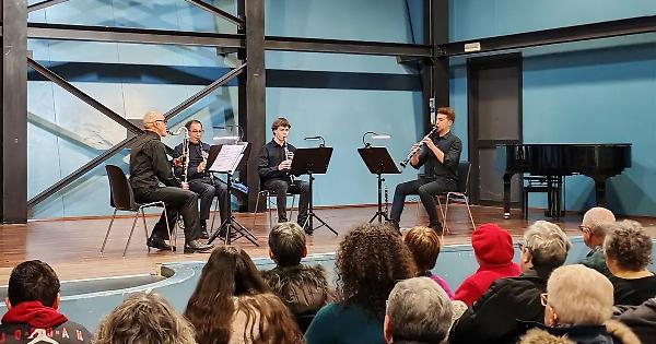 LADISPOLI - Ha preso il via con un interessante concerto del "Quartetto italiano di clarinetti" la stagione concertista dell'associazione Massimo. La rassegna concertistica, realizzata in sinergia con l'assessorato alla Cultura ha convogliato un folto pubblico al Teatro Vannini per ascoltare l'insolita formazione cameristica che ha proposto un accattivante percorso da Vivaldi e Paganini, fino a toccare il fascino nostalgico di Gardel e Piazzolla. I quattro musicisti del Quartetto: Luciano Cascioli, Luigi Scognamiglio, Davide Pellegri e Iacopo Scandale, con grandi capacità tecniche, hanno raggiunto un’efficace coesione e un notevole equilibrio sonoro, con un timbro e un fraseggio elegante, preciso, che ha messo in mostra una pregevole ampiezza di sfumature dinamiche. Prossimo appuntamento, sempre al Teatro Marco Vannini domani alle 18,30. Sulla scia della Festa della Donna, “VIOLINI in ROSA”, da Bach a Beethoven, da Debussy ad Ysaye, fino all’omaggio a due grandi donne compositrici, Clara Schumann e Lilì Boulanger.