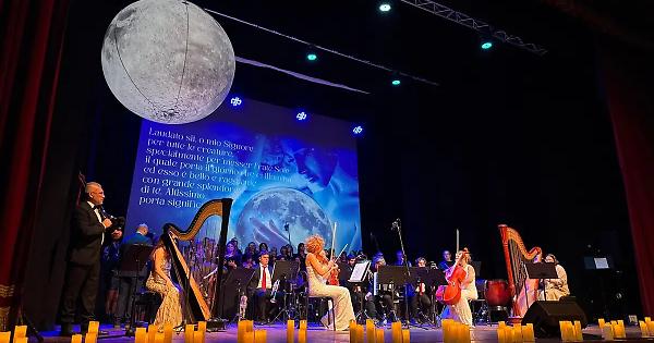 CIVITAVECCHIA – Al Teatro Traiano, la sera del 26 dicembre, Magia di Natale ha confermato di essere molto più di uno spettacolo: è stato un rito collettivo, un momento di condivisione autentica capace di trasformare la musica in dono e il teatro in casa comune. Il progetto ideato, scritto e diretto da Maria Letizia Beneduce si inserisce nel solco dei tradizionali concerti gratuiti natalizi offerti alla cittadinanza dalla Fondazione Ca.Ri.Civ., ma quest'anno riesce ad andare oltre la semplice formula del concerto, costruendo un vero racconto emozionale. Magia di Natale, andato in scena il 26 dicembre al Teatro Traiano, si conferma uno di quegli appuntamenti capaci di trasformare il concerto natalizio in un’esperienza scenica compiuta. Ideato e diretto da Maria Letizia Beneduce, lo spettacolo costruisce un racconto musicale che non si limita a evocare l’atmosfera delle feste, ma ne indaga il senso più profondo: la dimensione collettiva, il bisogno di ascolto, la memoria condivisa. La regia sceglie la strada dell’equilibrio, evitando l’eccesso celebrativo e puntando su una narrazione fluida, in cui i diversi linguaggi – musica corale, strumenti tradizionali, brass, percussioni e suggestioni visive – dialogano senza mai sovrapporsi in modo ridondante. Il risultato è una partitura scenica che procede per quadri, ciascuno con una propria identità, ma parte di un disegno unitario ben riconoscibile. Elemento centrale è il Coro Epikanten, diretto con precisione e sensibilità da Valerio Giannella e Valentina Bidolli, che funge da vero e proprio filo conduttore emotivo. Le voci accompagnano lo spettatore in un percorso che alterna intimità e solennità, trovando un contrappunto efficace nella City of Rome Pipe Band, capace di introdurre sonorità più marcate e di forte impatto. Le percussioni di Martina Granata e Riccardo Mostarda aggiungono ritmo e dinamica, mentre il Brass Side Story Quintet amplia il respiro dello spettacolo con soluzioni sonore brillanti e contemporanee. Particolarmente riusciti i momenti in cui la musica dialoga con strumenti dal forte valore simbolico, come le arpe di Augusta Giraldi e Giulia Bigioni o la zampogna e la cornamusa di Alessandro Mazziotti, che riportano il racconto a una dimensione più arcaica e popolare. Le Capinere si inseriscono con discrezione, contribuendo a un tessuto sonoro stratificato ma mai caotico. La scenografia digitale e grafica, curata da Patrizia Fiorucci, non è semplice cornice, ma parte attiva della drammaturgia visiva: immagini e colori accompagnano il fluire musicale senza distrarre, rafforzando piuttosto l’immaginario evocato. Sul piano tecnico, il lavoro audio e luci sostiene con efficacia l’impianto dello spettacolo, garantendo uniformità e chiarezza anche nei passaggi più complessi. Magia di Natale riesce così a distinguersi all’interno della tradizione dei concerti natalizi cittadini: non un evento rituale ripetuto per consuetudine, ma un progetto che rinnova ogni anno il proprio senso, affidandosi alla forza della musica e a una regia consapevole. Uno spettacolo che non chiede soltanto di essere ascoltato, ma di essere vissuto, confermando il Teatro Traiano come luogo privilegiato di incontro tra comunità e cultura.