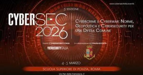 (Adnkronos) - "Cybercrime e cyberwar: norme, geopolitica e cybersecurity per una Difesa comune" è il titolo della 5° edizione di CyberSec, la conferenza internazionale promossa ed organizzata dal quotidiano Cybersecurity Italia che si terrà il 4 e 5 marzo prossimi alla Scuola superiore di polizia. L’edizione 2026 è in collaborazione con Polizia di Stato, che attraverso il servizio della polizia postale e della sicurezza cibernetica è in prima linea sia nel contrasto al cybercrime sia nella protezione delle infrastrutture critiche informatiche nazionali. La conferenza si terrà il 4 e 5 marzo 2026 a Roma presso la Scuola superiore di polizia.