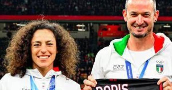 I due hanno ricevuto in regalo una maglia rossonera speciale (la numero 6 dello storico capitano Franco Baresi per Brignone, la 13 di Alessandro Nesta per Paris) e sono stati accolti da un caloroso boato del pubblico presente allo stadio.