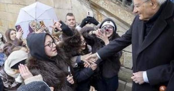 La giornata di Mattarella è iniziata con una passeggiata sul Ponte Carlo, sotto qualche fiocco di neve, dove ha incontrato due gruppi di studenti provenienti da Caltanissetta, che sorpresi ed entusiasti lo hanno salutato cantandogli l'Inno d'Italia.