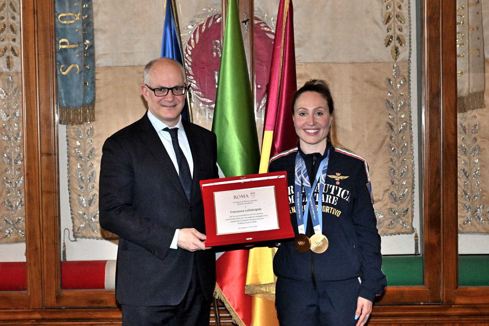 La pattinatrice di velocità su ghiaccio ha ricevuto un omaggio floreale e la targa della città di Roma "per la sua straordinaria carriera sportiva, impreziosita dalle due meravigliose medaglie d'oro conquistate nei Giochi Olimpici Invernali di Milano-Cortina 2026".