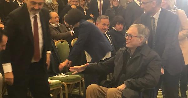 ROMA - La sorpresa di Andrea Augello: standing ovation all’evento con Francesco Rocca, Roberta Angelilli e Giancarlo Righini. Il senatore di Fratelli d’Italia era ricoverato in ospedale, ma questa mattina, pur essendo appena stato sottoposto a un intervento chirurgico, non ha voluto ugualmente mancare all’apertura della campagna elettorale di Angelilli e Righini, presentandosi all’improvviso nella sala congressi dell'hotel Parco dei e ricevendo 5 minuti di applausi da una platea commossa dal suo “Forza e onore”.