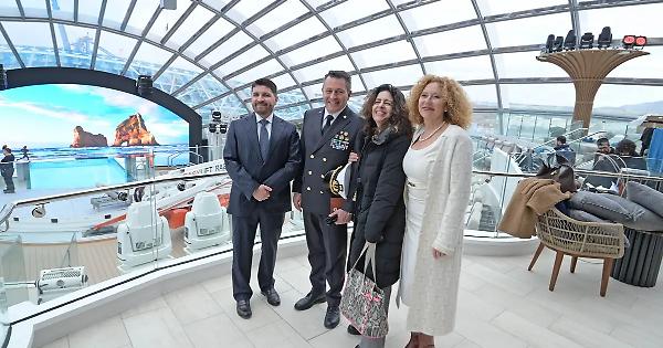 Ieri mattina a bordo si è tenuta la tradizionale cerimonia di scambio crest: a fare gli onori di casa Barbara Carabetti, ceo di dell’agenzia Cemar che gestisce gli accosti del gruppo Carnival, particolarmente soddisfatta per l’arrivo della nuova nave. Presenti il presidente dell’Adsp Pino Musolino, il comandante del porto Michele Castaldo, il vicesindaco Manuel Magliani oltre a rappresentanti del cluster marittimo.