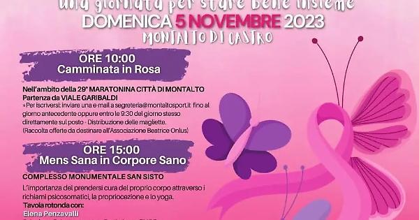 MONTALTO – Una giornata dedicata allo sport e alla prevenzione contro il tumore al seno. Nell’ambito della manifestazione sportiva “29esima Maratonina Città di Montalto”, domenica 5 novembre, alle ore 10:00, si terrà la “Camminata in Rosa”: una giornata dedicata alla prevenzione del tumore al seno insieme alla Polisportiva Montalto, Uisp e Beatrice Onlus.