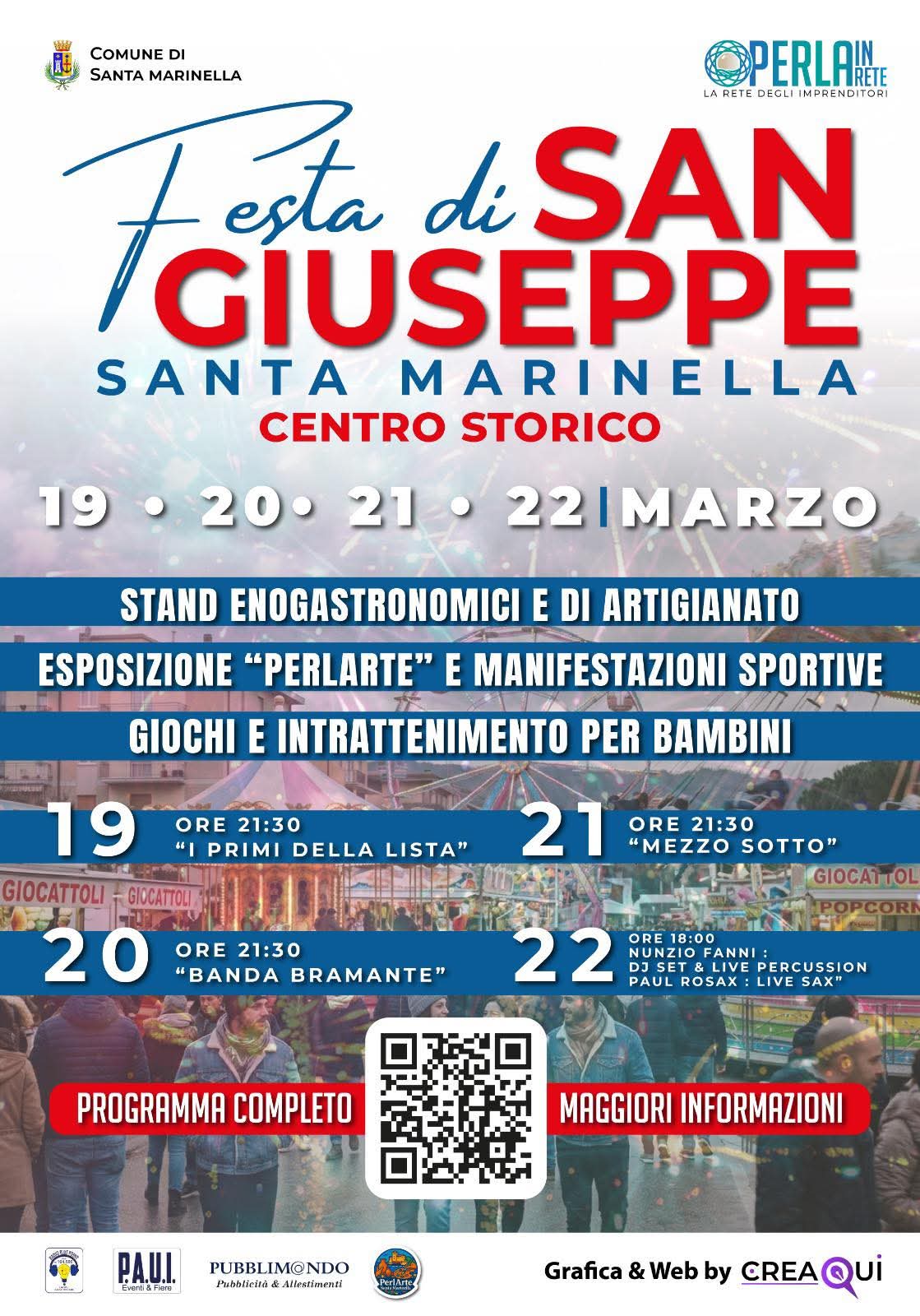 Prenderanno il via il 19 marzo i festeggiamenti in onore di San Giuseppe, Santo Patrono della città. Quest'anno l’organizzazione degli eventi sono stati affidati alla rete d’impresa Perlainrete, vincitrice del bando comunale. Un’edizione che si preannuncia diversa dal solito e che sta già sollevando diverse perplessità tra i cittadini, in particolare tra le fasce più giovani della popolazione, per l'assenza delle giostre. Per la prima volta dopo anni, il tradizionale Luna Park, storico punto di aggregazione per i ragazzi, non farà parte del programma. Una scelta che rende l'evento "orfano" della sua componente ludica, virando per un programma che si articolerà in soli quattro giorni e che si concentrerà quasi esclusivamente su Piazza Trieste, dove saranno allestiti stand enogastronomici, bancarelle di artigianato, mostre d’arte e spazi dedicati ai giochi per bambini. Il calendario degli spettacoli prevede: